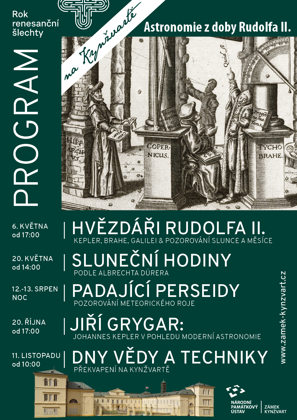 Státní zámek Kynžvart v úzké spolupráci s Plzeňskou pobočkou Hvězdárny v Rokycanech a Plzni a Českou astronomickou společností, která slaví letos své sté výročí, koná v sobotu 6. května 2017 pozorování oblohy a seznámení s renesančním hvězdářstvím v areálu zámku Kynžvart.