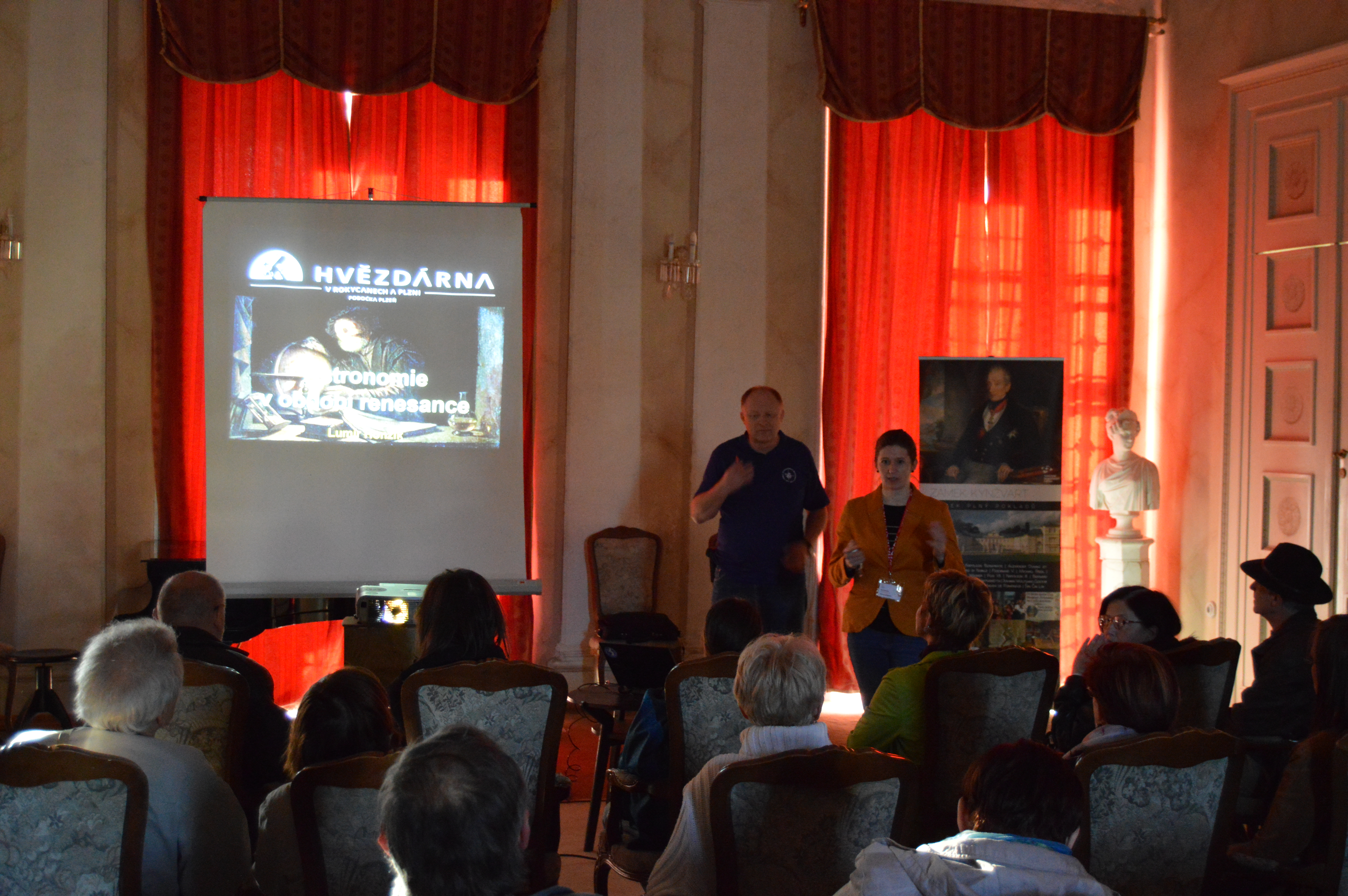 Na úvod měli návštěvníci možnost před zámkem pozorovat Slunce hvězdářskými dalekohledy s poutavým výkladem pracovníků Hvězdárny v Rokycanech a Plzni, která garantovala odborný obsah akce. Poté se návštěvníci přesunuli do Velkého sálu, který je součástí expozice zámku. Tam program pokračoval prezentací o zajímavostech a historii renesanční astronomie. V sálu byly také vystaveny vzácné historické tisky. Vedle prvního vydání Astronomia Nova z roku 1609 od Johanna Keplera jmenujme například kolorovaný bohatě ilustrovaný astronomický atlas od Andrea Cellaria z roku 1661. V závěru akce mohli účastníci pozorovat z balkónu Velkého sálu jedním dalekohledem povrch Měsíce a druhým Jupiter a jeho tři tzv. Galileovské měsíce. V prostoru pokladny byly k dispozici vybrané astronomické a optické hry, které potěšily nejen nejmladší návštěvníky, ale i dospělé osazenstvo.