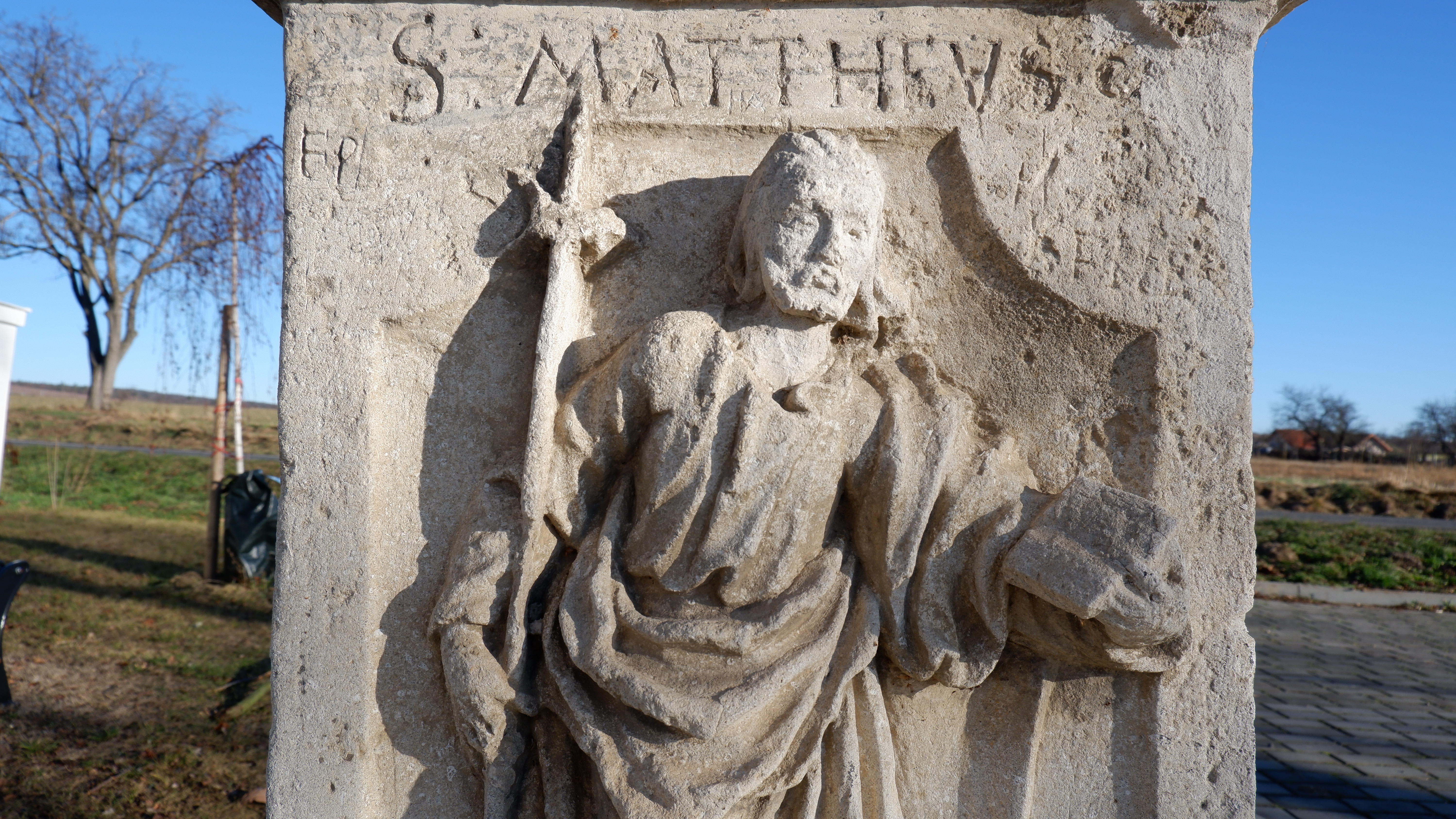 Pilíř se sochou Umírajícího sv. Františka Xaverského původně stojící v polní krajně severně od Dyjákovic, nyní uložen v torzálním stavu u kaple sv....
