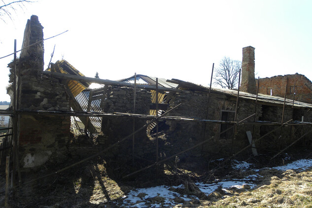 Zůstalo pouze obvodové zdivo s rozpadajícími se štíty, komínové těleso, část vnitřních příček a klenby nad jihovýchodní částí objektu. Fasády jsou těžce poškozeny, smíšené zdivo výrazně zavlhá a drolí se. Provizorní zastřešení se místy propadá a do objektu zatéká.