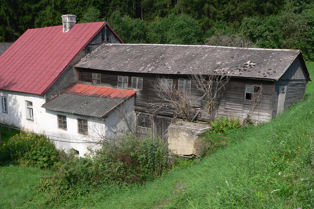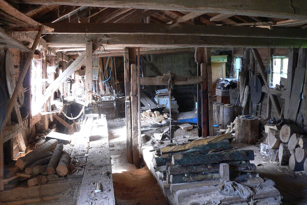 Dřevěná konstrukce vodní pily je vážně poškozena a napadena dřevomorkou. Vlastní mechanismus je víceméně pořádku.