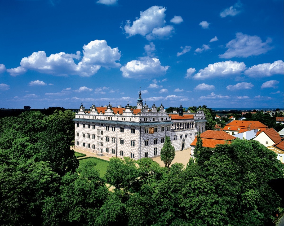Renesanční sídlo stojí na místě biskupského hradu ze 14. století. Pro Vratislava z Pernštejna ho v letech 1568–1581 postavili Italové Giovanni Battista a Ulrico Aostalli, kteří mu vtiskli podobu reprezentativní monumentální rezidence inspirované italskými paláci. Zámek má tři nádvoří a siluetu hlavní hmoty člení štíty a komíny. Bohatá sgrafitová výzdoba všech průčelí sídla s motivy tradičních psaníček i figurálními motivy, jimž dominují dvě velké bitevní scény, je rovněž dílem italských mistrů. Jedinečné jsou třípatrové arkády hlavního nádvoří, z nichž jedna je iluzivní kulisou umožňující krásné průhledy. V barokně upravených interiérech se dochovalo zámecké divadlo z konce 18. století včetně souboru malovaných kulis a dekorací od Josefa Platzera. K hlavní budově přiléhá park a areál je uzavřen budovami bývalé kočárovny, konírny, jízdárny a renesančního pivovaru, který byl v první třetině 18. století barokně přestavěn Františkem Maxmiliánem Kaňkou.