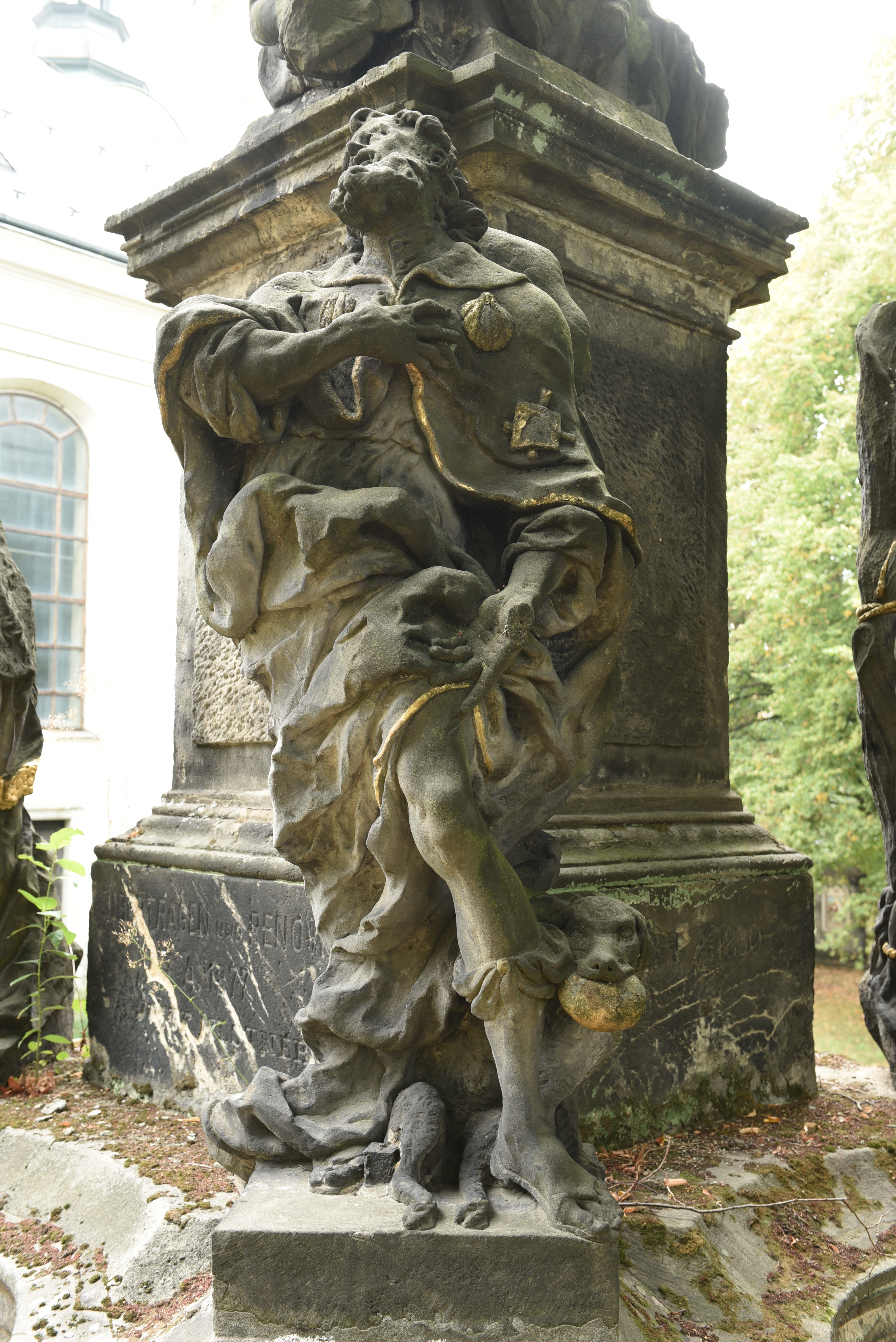 Na třech pískovcových stupních spočívá prostorově členěná mohutná hmota dvoustupňového podstavce se čtyřmi pilíři, které nesou čtveřici částečně zlacených nadživotních soch patronů proti moru. Na centrální část podstavce navazuje odstupňovaný pilíř vrcholící sochou Panny Marie Immaculaty. Sochařská výzdoba je sekána z jemnozrnného bělavého pískovce, těženého u Dvora Králové a typického pro dílnu Braunovu. Díky použití vysoce kvalitního kamene sochy dosud nesou stopy jemného broušení či naopak hrubého opracování kamenickými nástroji a uchovaly si tak velkou míru autenticity.