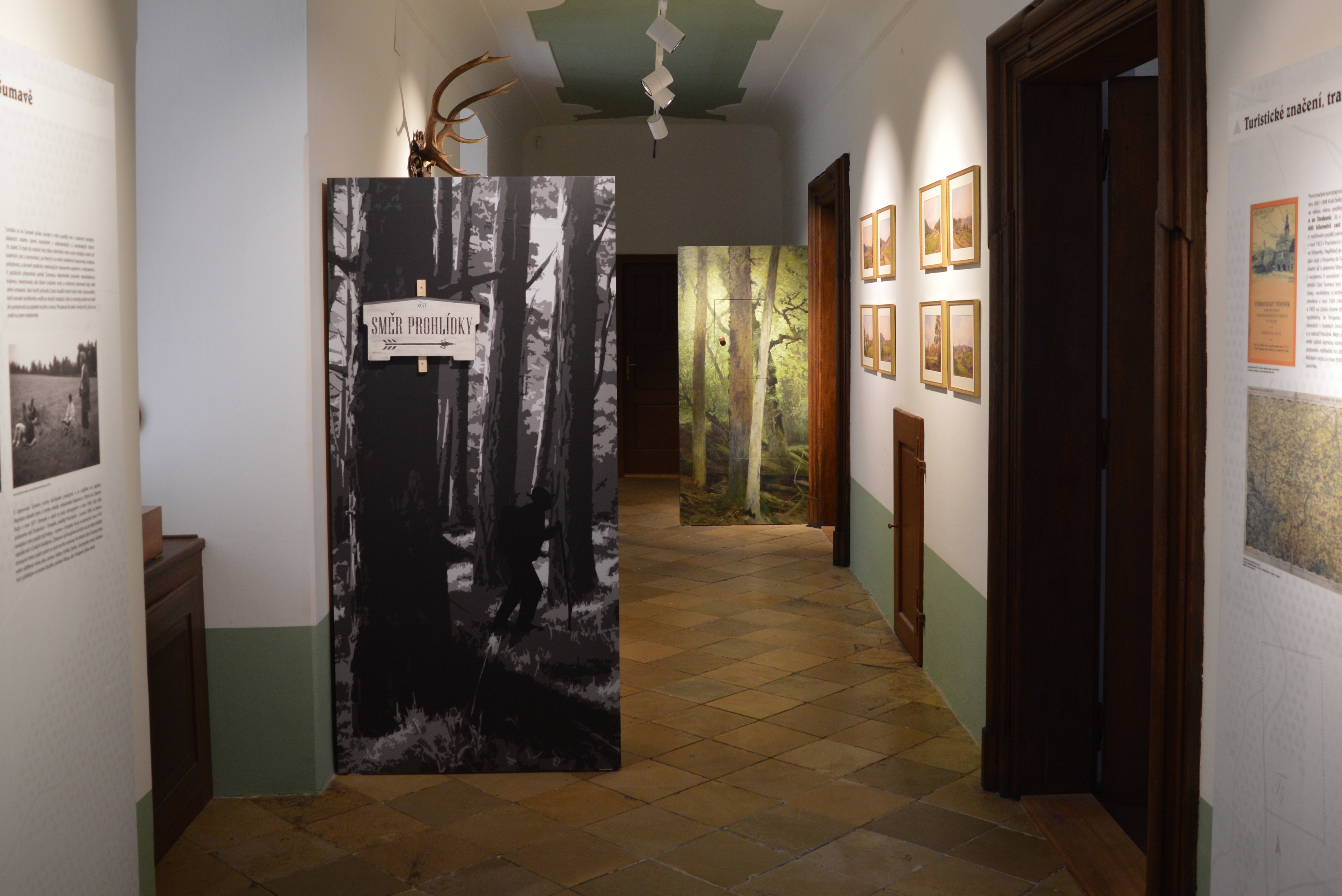 Muzeum, jež na zámku sídlí od roku 1961, přibližuje ve 21 místnostech knihtisk, sklářství, lov i dějiny Šumavy. Jedním ze stěžejních předmětů expozice je první vydání knihy Šumava umírající a romantická Josefa Váchala, která byla do muzea dočasně zapůjčena ze sbírek zámku Hluboká. Šumavu jako turistický cíl přibližují lyže nebo saně na svážení dřeva. Loveckou tradici zpřítomňují kulovnice, kuše, tesák i vak na broky, práci se dřevem zase takzvané mejšláky, pantofle s dřevěnou podrážkou a koženým svrškem. Návštěvníci se seznámí s osobností a prací knihtiskaře Johanna Steinbrenera. Do expozice byla zhotovena kopie gotické sochy Vimperské madony. V dalších sálech dostalo prostor sklářství či firmy z 20. století jako Mykoprodukta, která vyráběla šumavské bylinné víno. Opomenuta nebyla ani doba takzvané železné opony. Období, kdy byly prostory vimperského zámku využívány jako byty, připomene zařízení kuchyně a ložnice ze 70. let minulého století.