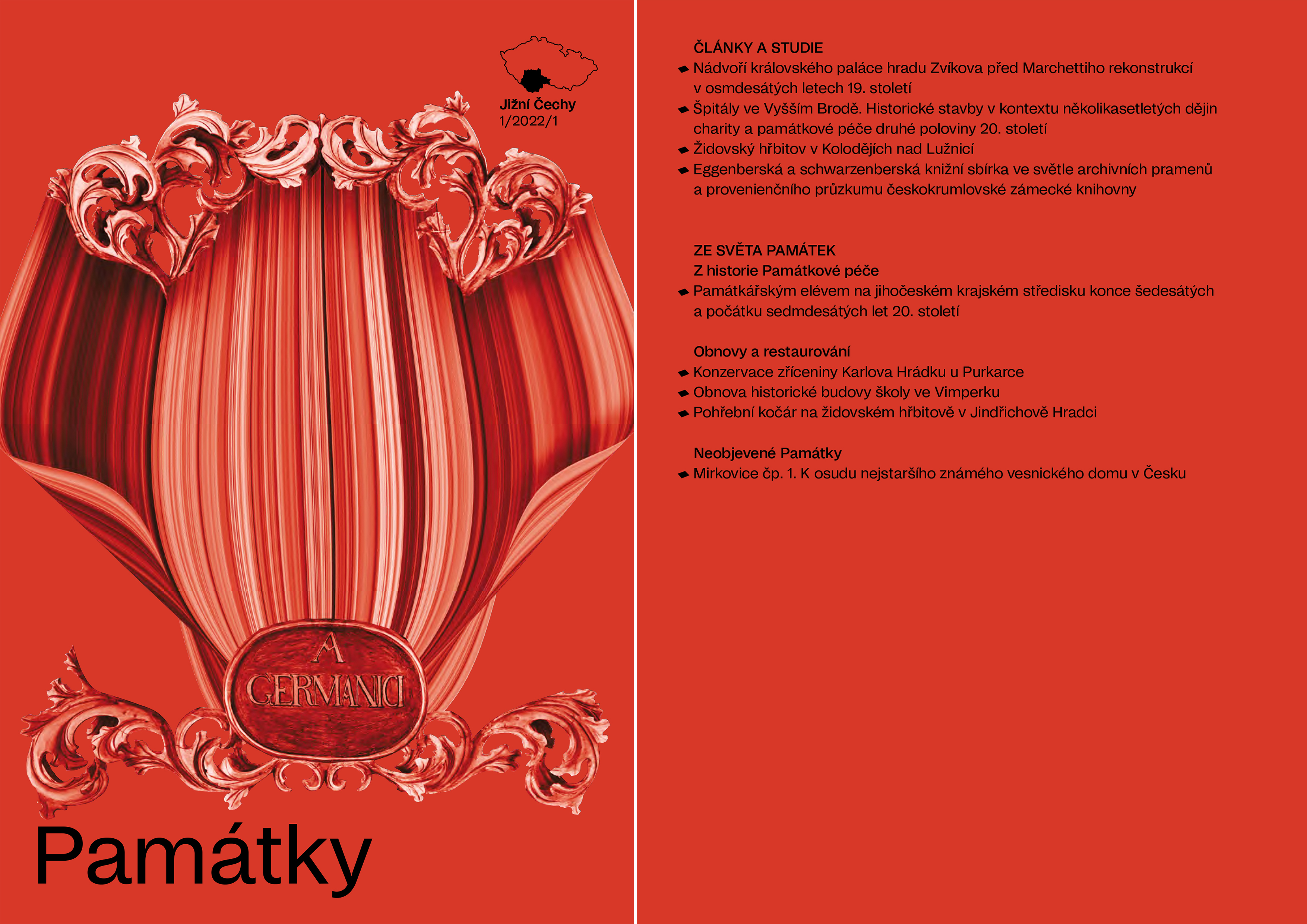 „S respektem k národnímu kulturnímu dědictví usiluje časopis šířit poznání a probouzet odborný zájem a nadšení pro naše památky v jejich rozmanitosti a členitosti, pro jejich péči a restaurování, pro porozumění jejich odkazu a hodnoty,“ uvádí předsedkyně redakční rady časopisu a vědecká tajemnice NPÚ PhDr. Jitka Balcarová, Ph.D. Redaktor prvního čísla zaměřeného na jižní Čechy Mgr. Martin Gaži dodává: „První číslo nabízí opravdu pestrou škálu témat – od hledání podoby hradu Zvíkov před jeho částečnou přestavbou v 19. století či průzkumu skvostů uchovávaných v českokrumlovské zámecké knihovně, až po objevování památek, na které se zapomnělo: středověkých špitálů ve Vyšším Brodě nebo nejstaršího venkovského stavení v Čechách. Nechybí ani rozhovor o jihočeské památkové péči na přelomu 60. a 70. let 20. století s nedávno zemřelým doyenem oboru Ing. Alešem Krejčů.“
