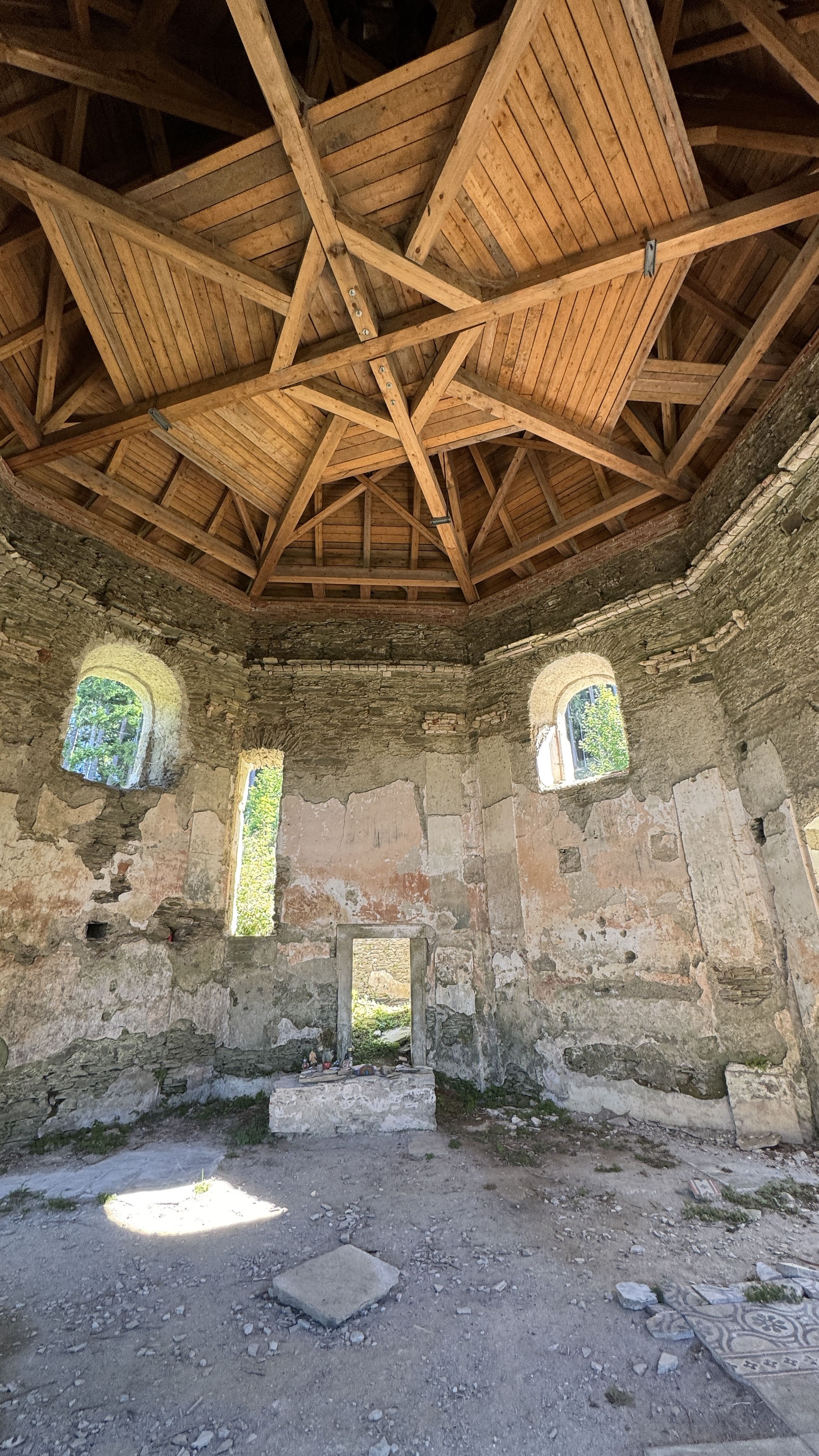 - vaznicový krov se dvěma šikmo vzepřenými stolicemi,