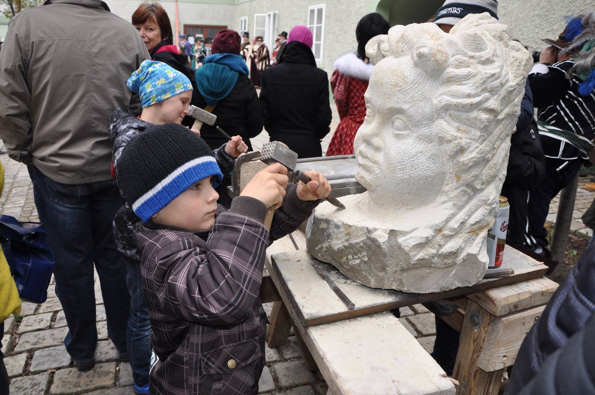 Po celý den mohli návštěvníci pozorovat při práci kamenického mistra Tomáše Frantu, někteří si kamenické nástroje i vyzkoušeli.