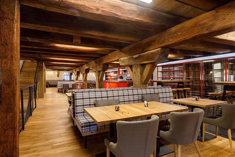 Vysoce odbornou řemeslnou kvalitu má obnova interiéru, oprava tříúrovňového krovu i zajištění stropních trámů a záklopů. Před zahájením oprav byly tyto jedinečné konstrukce v havarijním stavu. Do záhlaví trámů se musely vkládat ocelové prvky. Na práce tesařů navazovala povrchová úprava navržená technologem a restaurátorem. Podařilo se tak splnit požadavek maximální míry zachování původního materiálu a jeho autenticky ručně opracovaného povrchu bez pohledově se uplatňujících zásahů nebo nových zpevňujících vrstev. Realizace prokázala, že i komerční využití objektu může být památkově vstřícné.