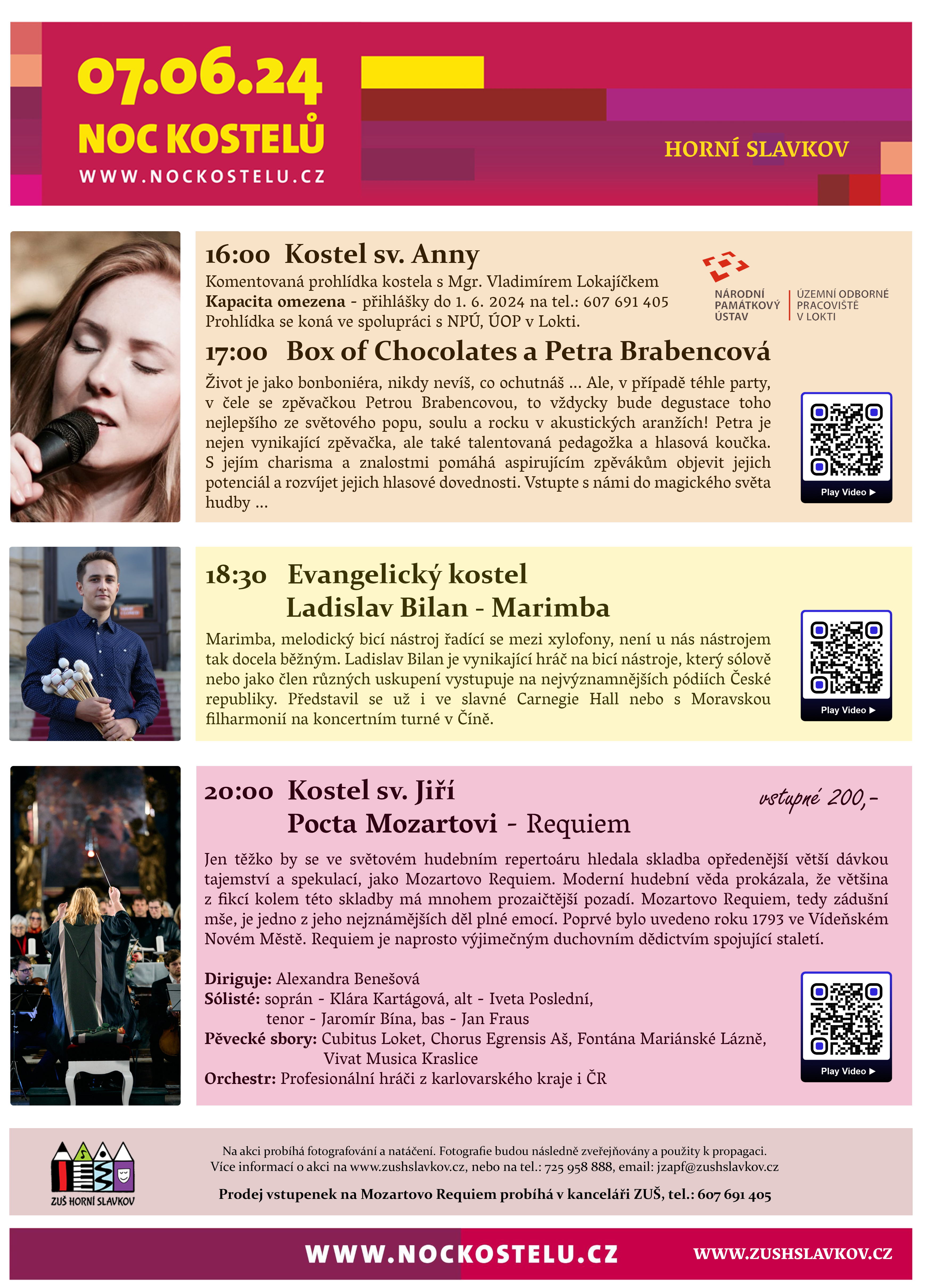 Po prohlídce bude následovat koncert Petry Brabencové. Více informací o tomto i dalších koncertech v ostatních slavkovských kostelech najdete na webu Noci kostelů nebo na plakátu akce.