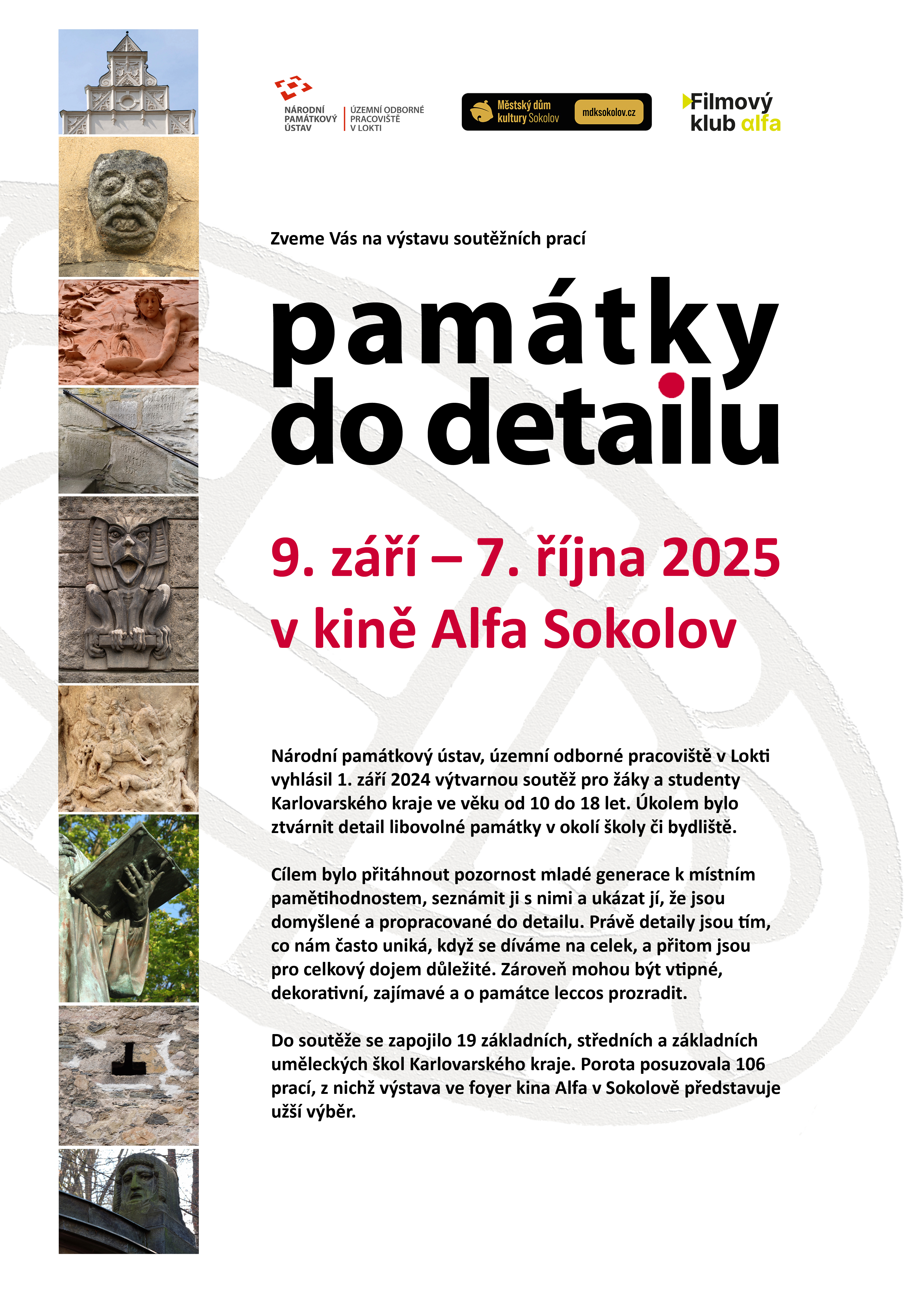 Národní památkový ústav, územní odborné pracoviště v Lokti vyhlásil 1. září 2024 výtvarnou soutěž s názvem Památky do detailu pro žáky a studenty Karlovarského kraje ve věku od 10 do 18 let. Úkolem bylo ztvárnit detail libovolné památky v okolí školy či bydliště.