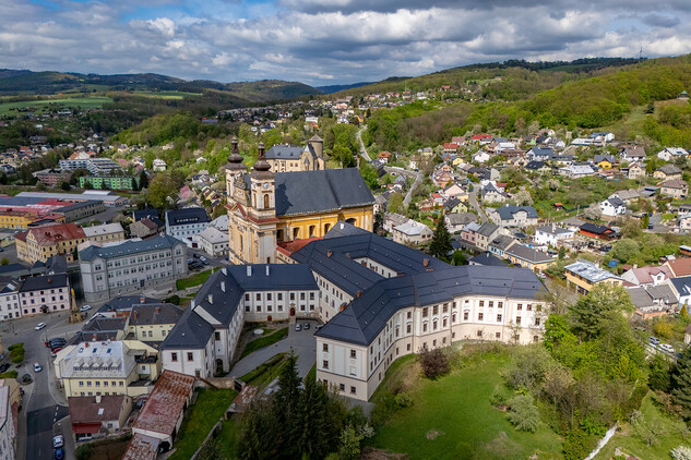 Obr. 1 Město Šternberk, pohled na centrum města s bývalým augustiniánským klášterem a kostelem Zvěstování Panny Marie. Foto: Zdeněk Adámek
