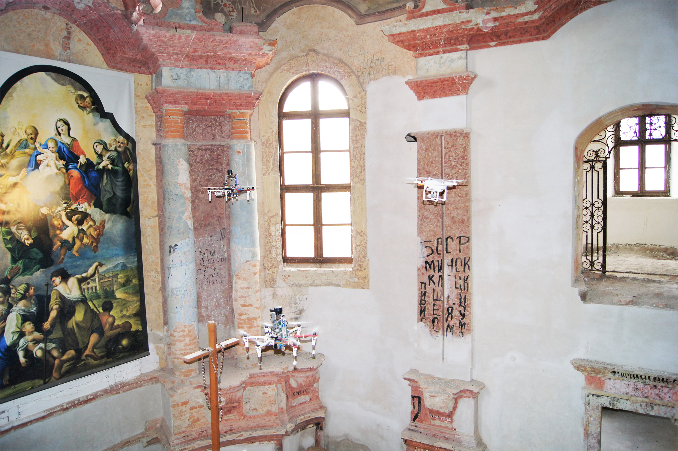 Ve spolupráci s technickovýzkumným týmem pro multi-robotické systémy z Katedry kybernetiky Českého vysokého učení technického v Praze proběhla experimentální vizuální dokumentace architektonických detailů poutního kostela ve Staré Vodě za pomocí zmíněných dronů. Podařilo se tak v krátkém čase získat velké množství dat podrobné dokumentace. Poskytnutá data zprostředkují jasnou představu o stavu nástropní i nástěnných maleb včetně štukové výzdoby, a poslouží jako podklady pro rozvahu o tom, které části výzdoby je nutné sanovat nejdříve. Mají pomoci vlastníku této památky i památkářům ke stanovení věcného i časového rámce pro harmonogram záchrany ještě dochovaných hodnot.