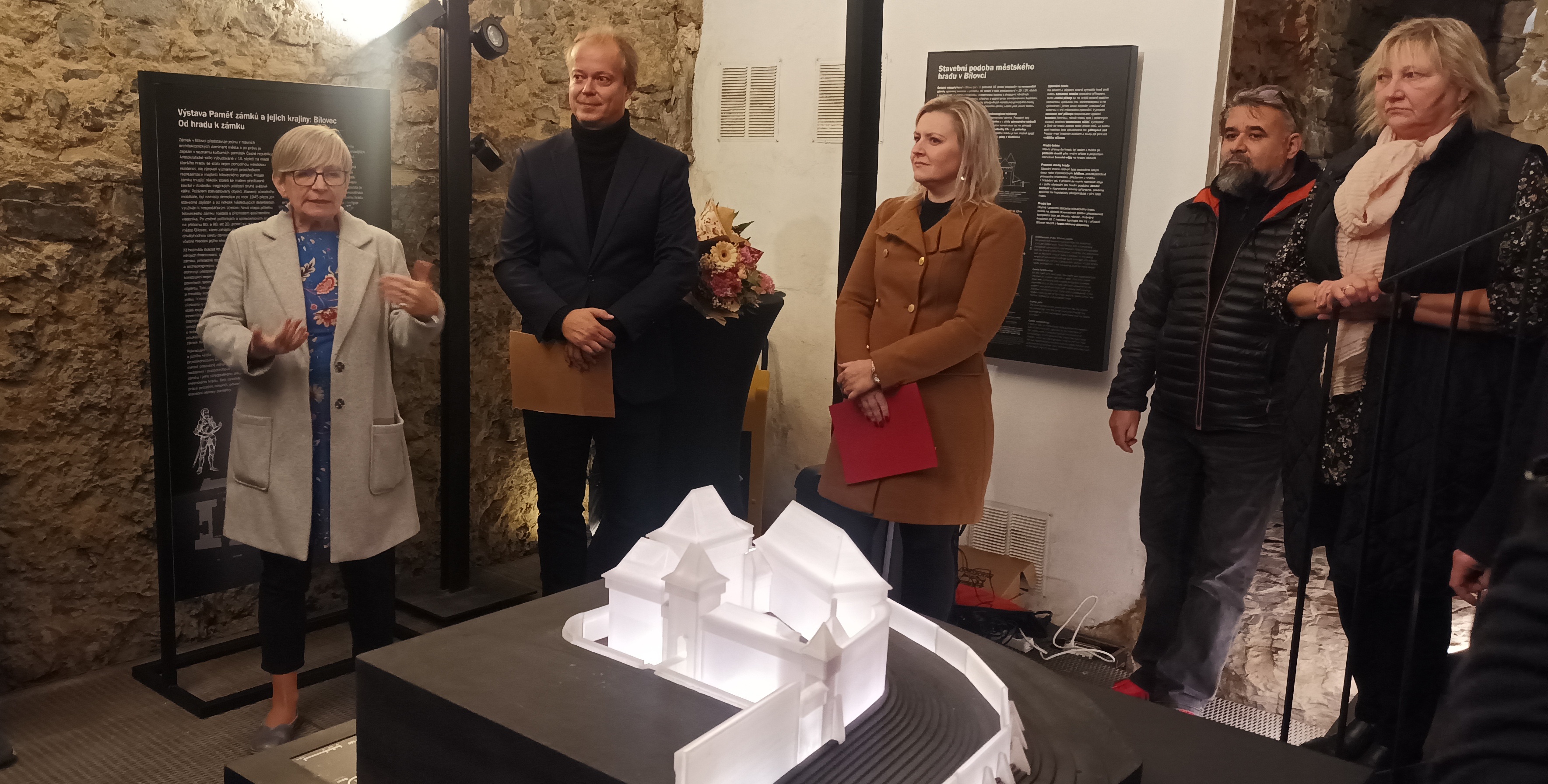 Výstava Paměť zámků a jejich krajiny: Bílovec. Od hradu k zámku byla zahájena ve čtvrtek 30. 10. v expozici Skrytý středověk. Výstava představuje možnou podobu pozdně gotického městského hradu, renesančního zámku a v neposlední řadě i samotného města Bílovce v hradbách formou modelů a kresebných rekonstrukcí. Ve videích a v krátkém dokumentu můžeme tedy „projít stavbou.“ Zmapován je průběh archeologických prací a stavebněhistorických poznatků. Vystaveny jsou nálezy, například vzácný renesanční snubní prsten. Více se dozvídáme o zásobování bílovecké kuchyně, o pravidlech stravování a stolování, dobové podobě kuchyní. Ukázku připravenou prof. Irenou Korbelářovou ze Slezské univerzity v Opavě a jejím týmem bylo možné ochutnat při zahájení výstavy. Expozice se dále věnuje majitelům objektu. Pomyslným průvodcem bíloveckým gotickým hradem je rytíř Mikuláš mladší z Vladěnína, zatímco renesanční zámek reprezentuje urozená Kristýna Pražmová z Bílkova, rozená z Lapic.