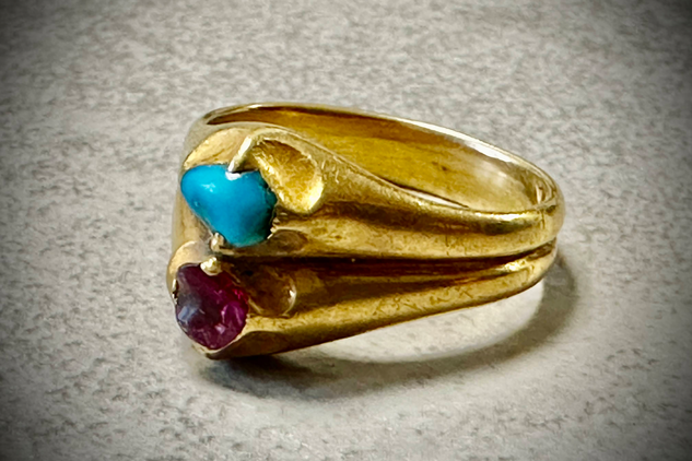 K nejvýznamnějším nálezům patří zlatý prsten z přelomu 15. až 1. polovina 16. století. Zlatý prsten se našel v archeologické sondě na konci jižního křídla zámku, pod dlažbou z 18. století, v historické vrstvě datované do 15. až 17. století. Byl vyroben z osmnáctikarátového zlata s příměsí stříbra a mědi, technikou odlévání, poté byl zbroušen a vyleštěn. Design prstenu je jedinečný. Zadní část obroučky je jednolitá, ale v polovině se rozděluje na dvě části, což vyvolává dojem dvou samostatných kroužků. Na každém z nich je vytvořena korunka ve tvaru čtyřlistého okvětního lístku, do které jsou vsazeny dva kameny. Rubín pochází z naleziště v Myanmaru (Barmy) a tyrkys z oblasti Íránu.