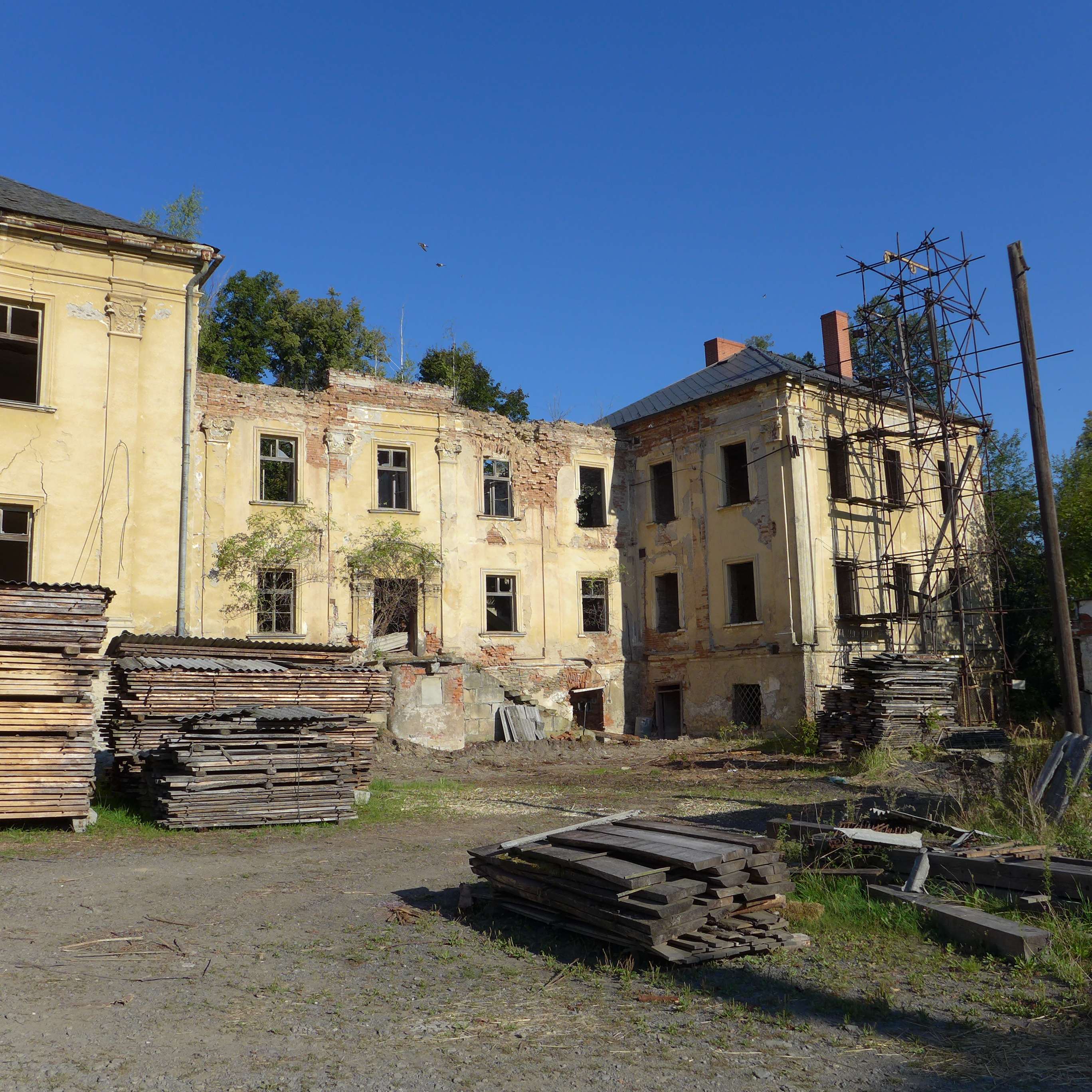 Bratři Karel a Jan Trlicovi koupili zámek v roce 1997. V průběhu roku 1998 probíhaly projekční práce na statickém zajištění objektu. Novým majitelům byl rozhodnutím okresního úřadu v roce 1998 přiznán příspěvek na obnovu I. etapy zajištění zámku ve výši 99 000 Kč. V následujícím roce získali příspěvek z prostředků havarijního fondu Ministerstva kultury ve výši 250 000 Kč. Částka byla určena na čistící práce, demolice zřícené části, odstranění napadených konstrukcí, celkovou statickou stabilizaci západního a severozápadního křídla. Objekt byl v rámci deklarované etapy stabilizován.