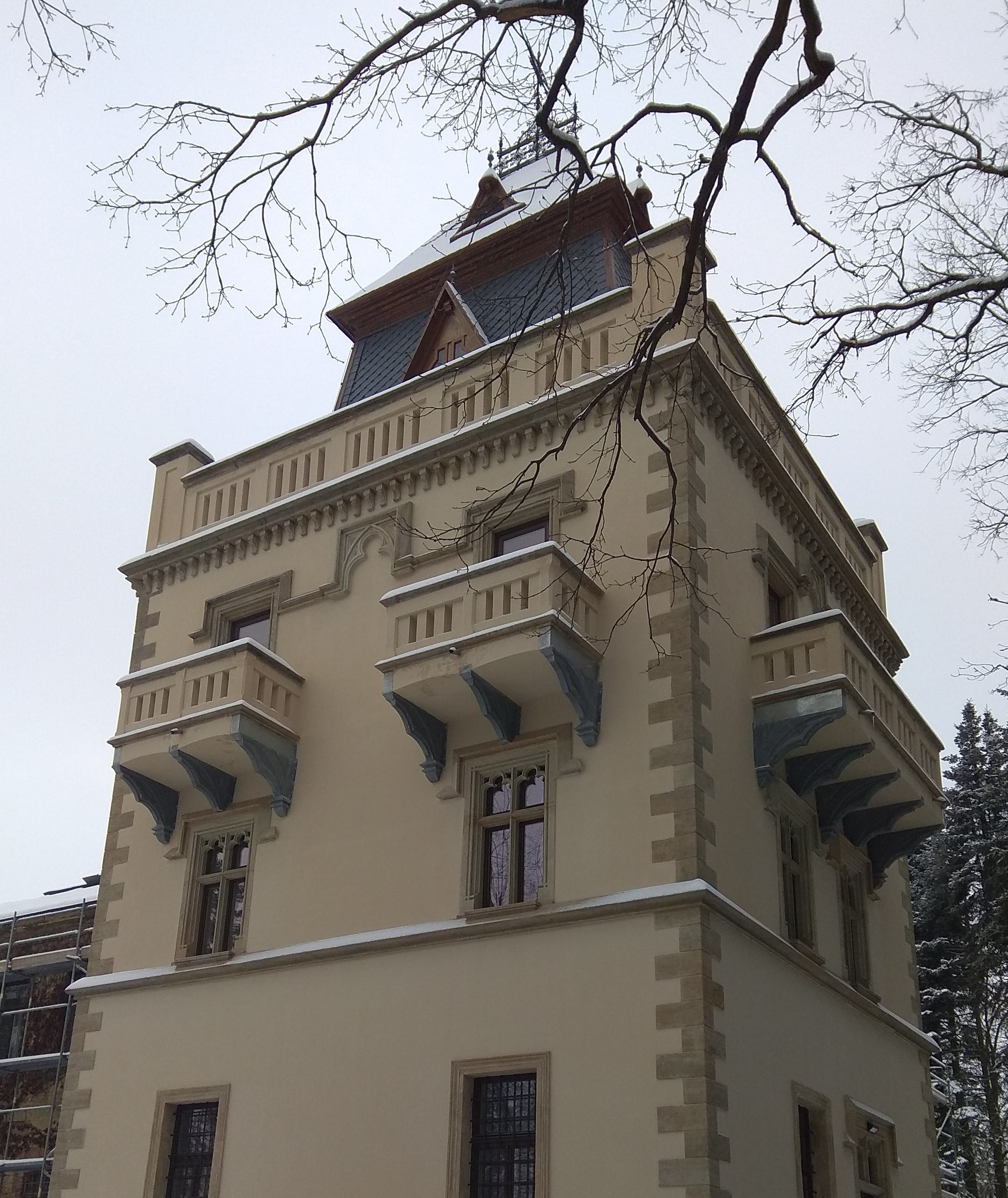 Pietní místo spjaté s událostmi druhé světové války bylo původně podnikatelskou vilou, postavenou v roce 1884 v romantickém historizujícím stylu podle plánů Františka Schmoranze.