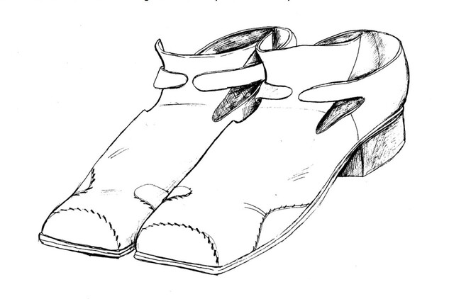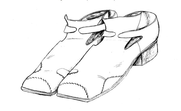 Kresebná rekonstrukce nalezeného páru nízké pánské obuvi ke každodennímu použití z období 1700-1720. Určení a rekonstrukce: V. Pilná.