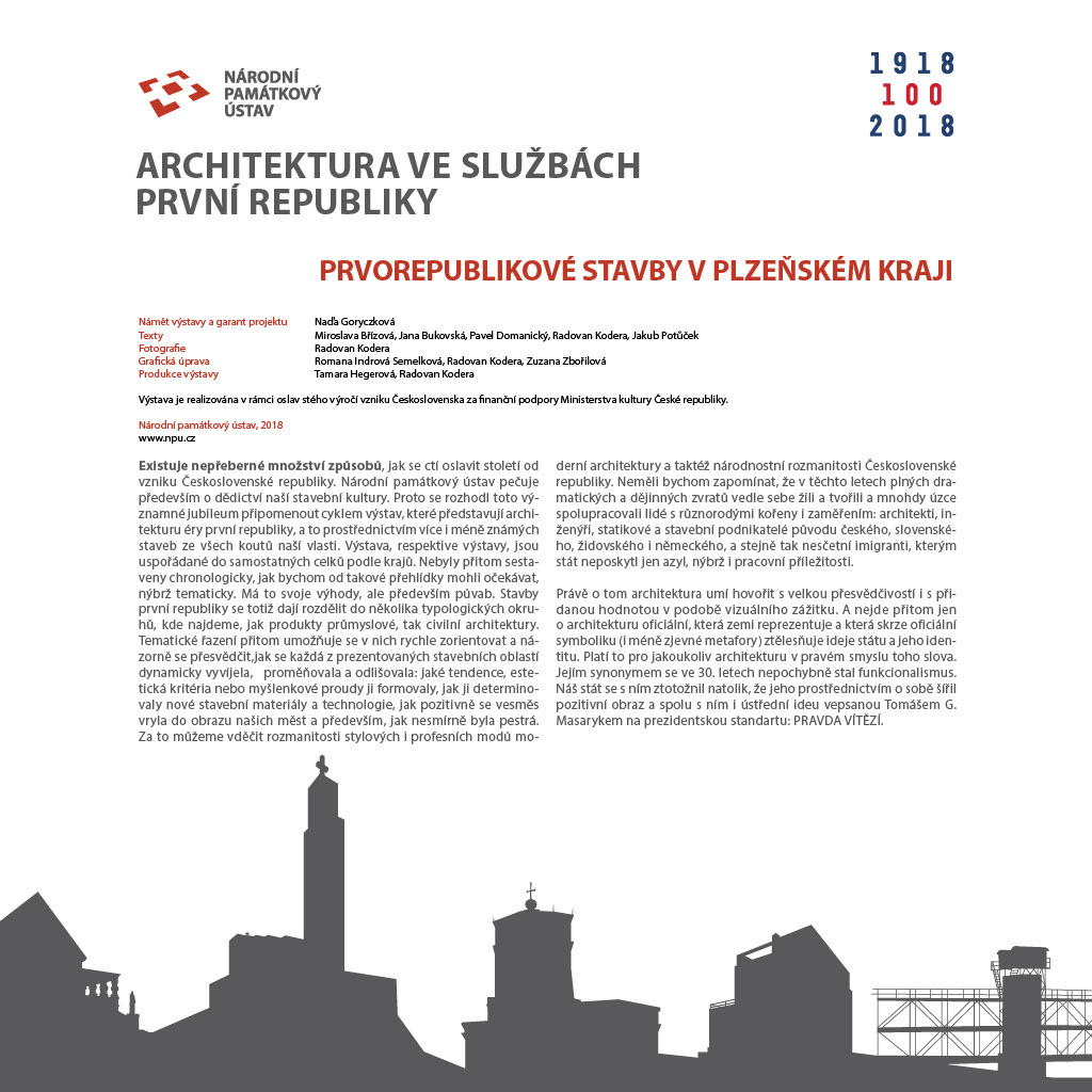 Výstava byla součástí série regionálních výstav Národního památkového ústavu, probíhající v rámci oslav stého výročí vzniku Československa od začátku roku 2018. Výstava představila stovku meziválečných staveb v deseti různých typech architektury.