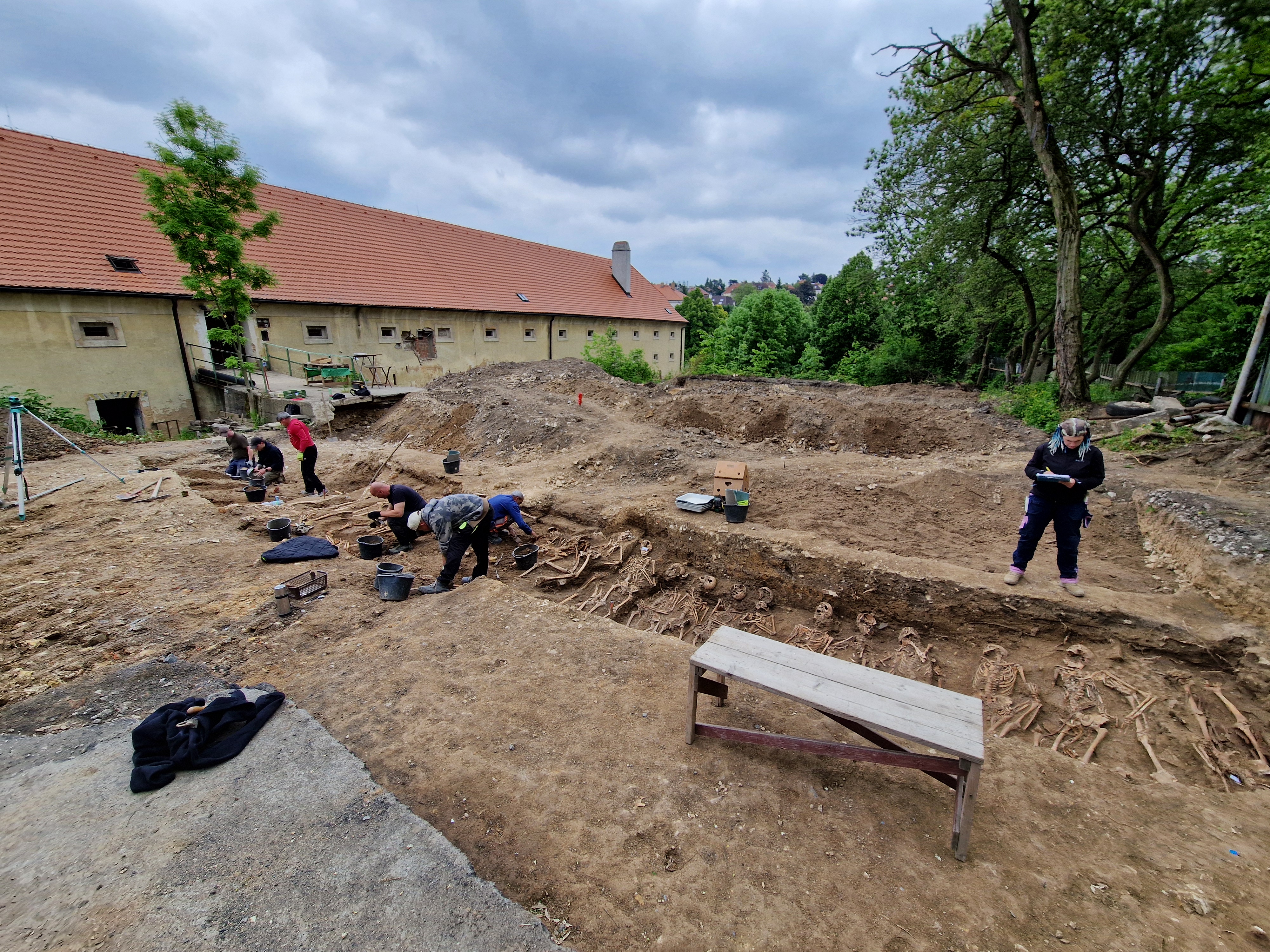 Kdo byl na zkoumané ploše pohřben? Podle písemných pramenů sloužilo místo k uložení ostatků ve dvou válkách 18. století, během nichž byly budovy kláštera využívány pruským vojskem jako polní nemocnice. Starší pohřby (cca ke čtyřem desítkám jedinců) pocházejí nejspíše z doby obsazení Prahy pruskými vojsky v září 1744, mladší (drtivá většina) pak ze sedmileté války, kdy Prusové v roce 1757 zvítězili v krvavé bitvě u Štěrbohol a poté téměř dva měsíce Prahu obléhali.