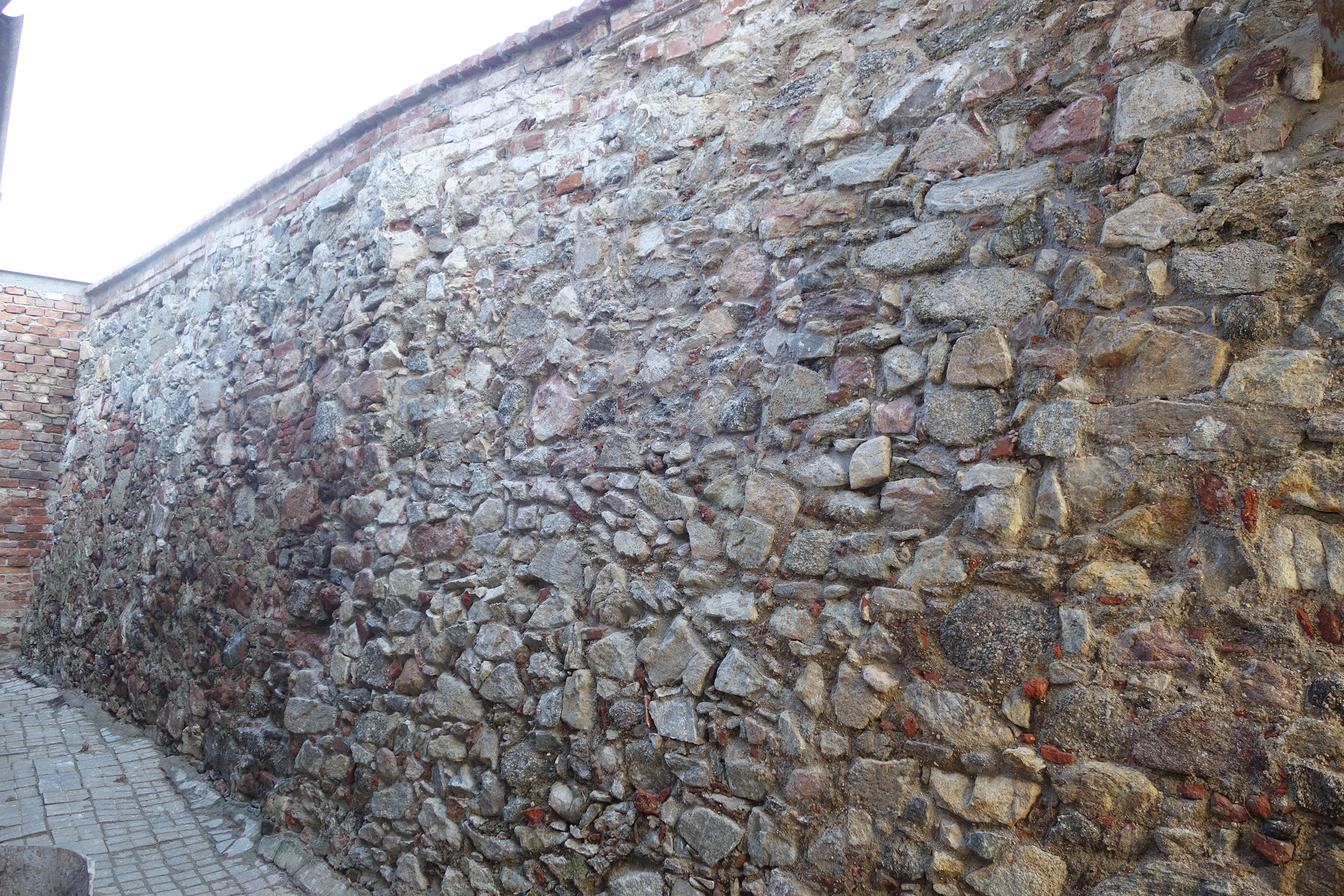 Obnovovaný úsek hradební zdi byl z obou stran přerušen a dlouhodobě poškozen zejména zřícením téměř celého severního líce. Negativně se na jeho stavu podepsaly i dřívější stavební zásahy, kdy byla zeď vestavěna do hospodářských objektů a místy přestavována s využitím cihelného zdiva. Skladba konstrukce se tak výrazně lišila od dochovaných souvislých částí městského opevnění zakončených cimbuřím. S ohledem na vývoj městského opevnění v několika historických etapách nebylo možné přesně určit původní podobu zdi.