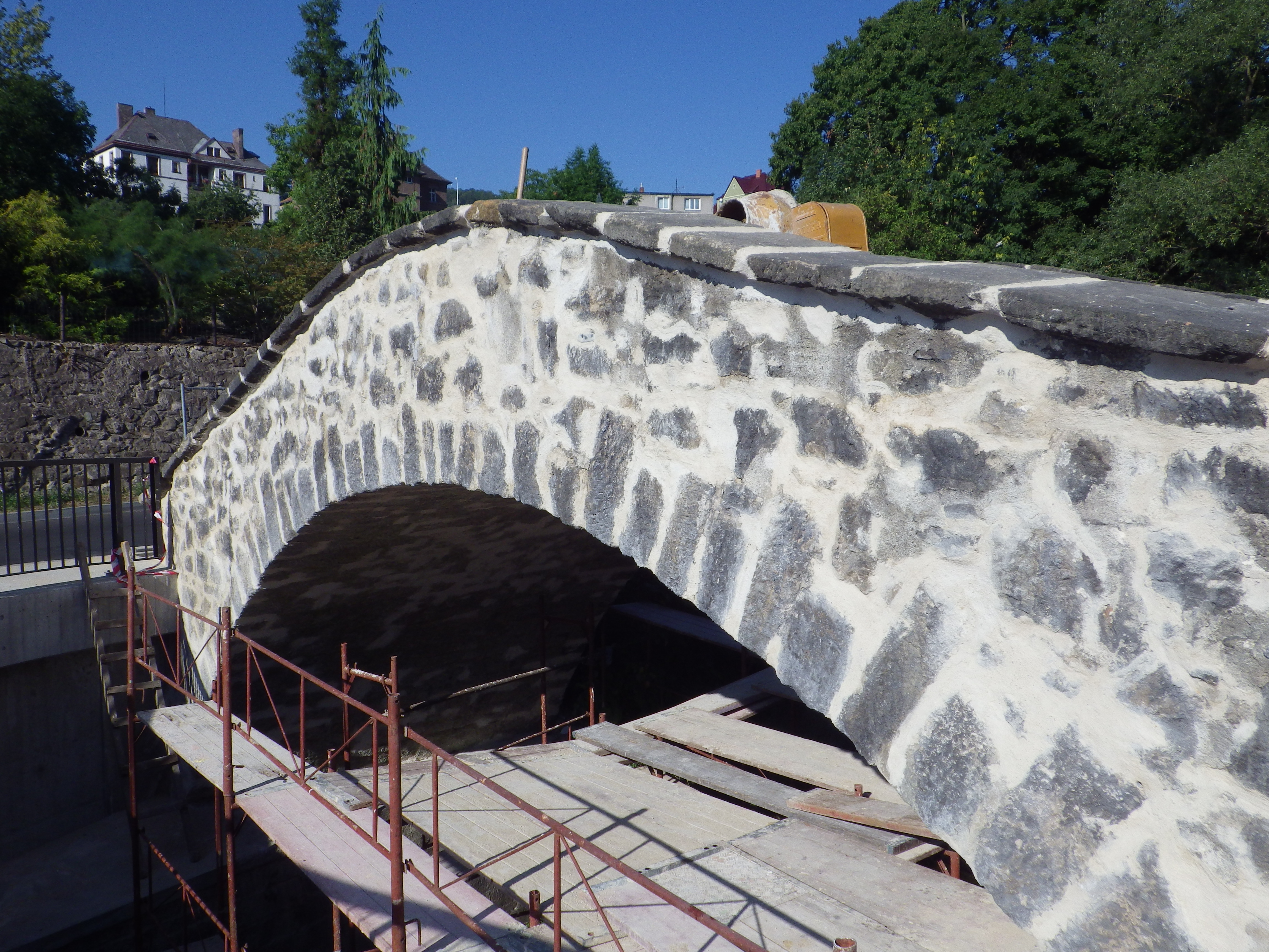 V současné době finišuje obnova charakteristického klenutého kamenného mostku, který dal postavit roku 1561 Günter z Bünau.