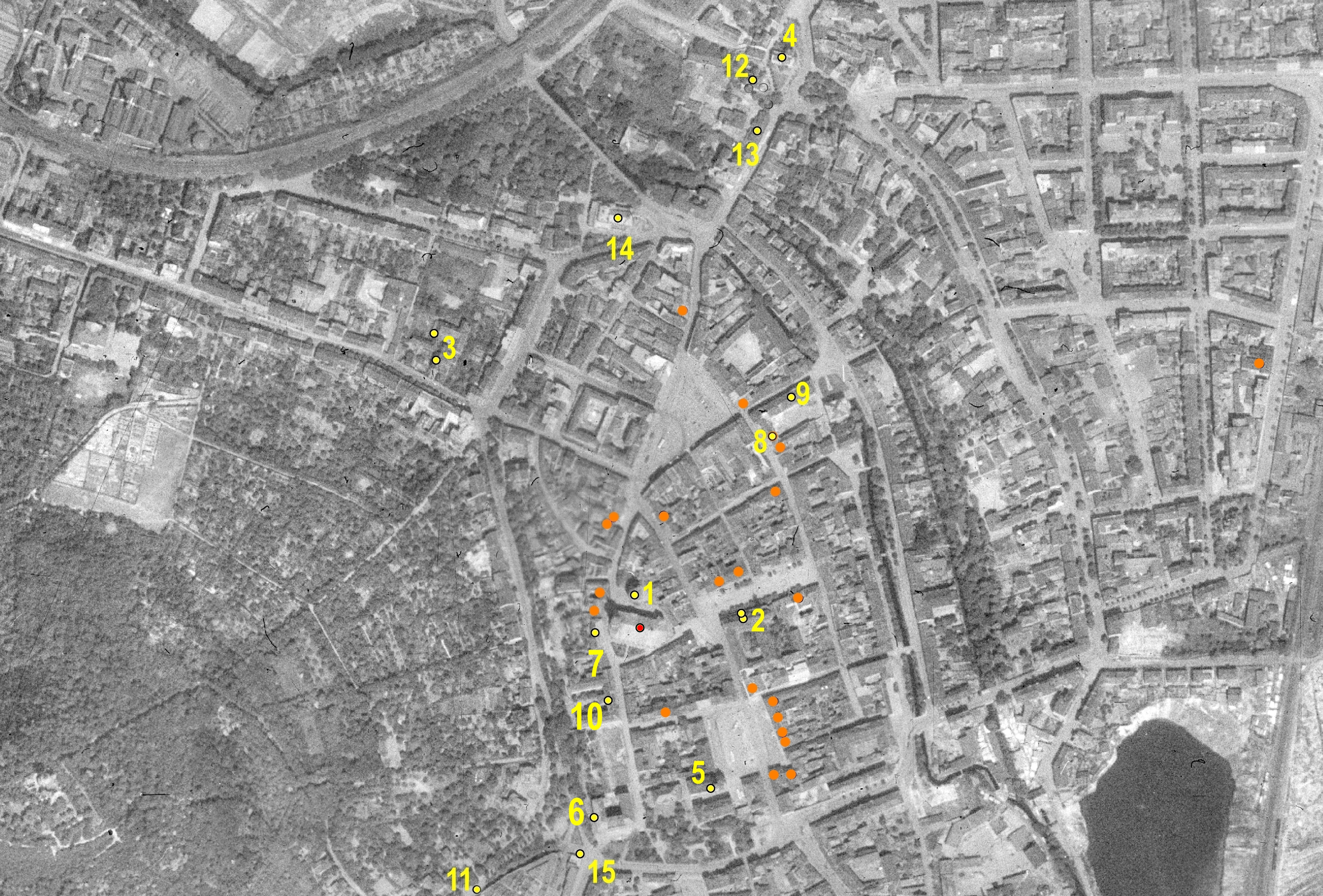 - Areál hostince č. p. 447 (na Střelnici) - na jeho místě je nyní jezírko u kostela Nanebevzetí Panny Marie