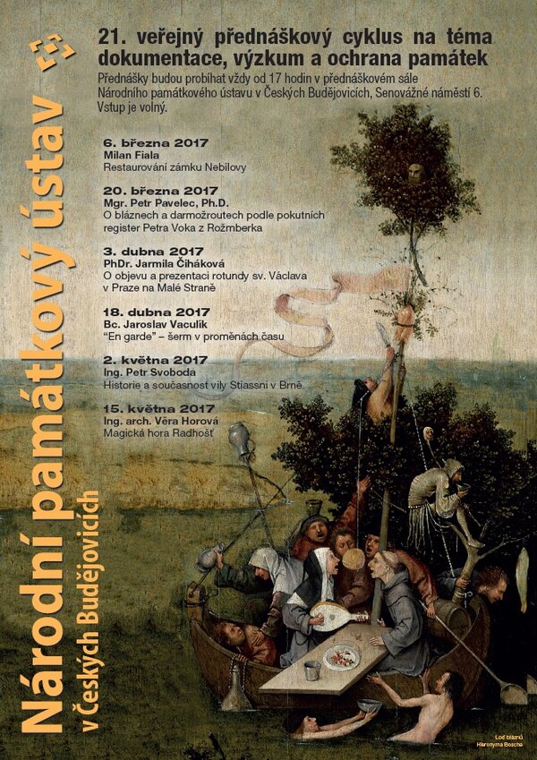 Přednáškový cyklus pořádá územní památková správa NPÚ v Českých Budějovicích ve spolupráci s územním odborným pracovištěm NPÚ v Českých Budějovicích. Přednášky probíhají v sále Národního památkového ústavu na Senovážném náměstí 6 vždy od 17 hodin, vstup volný.