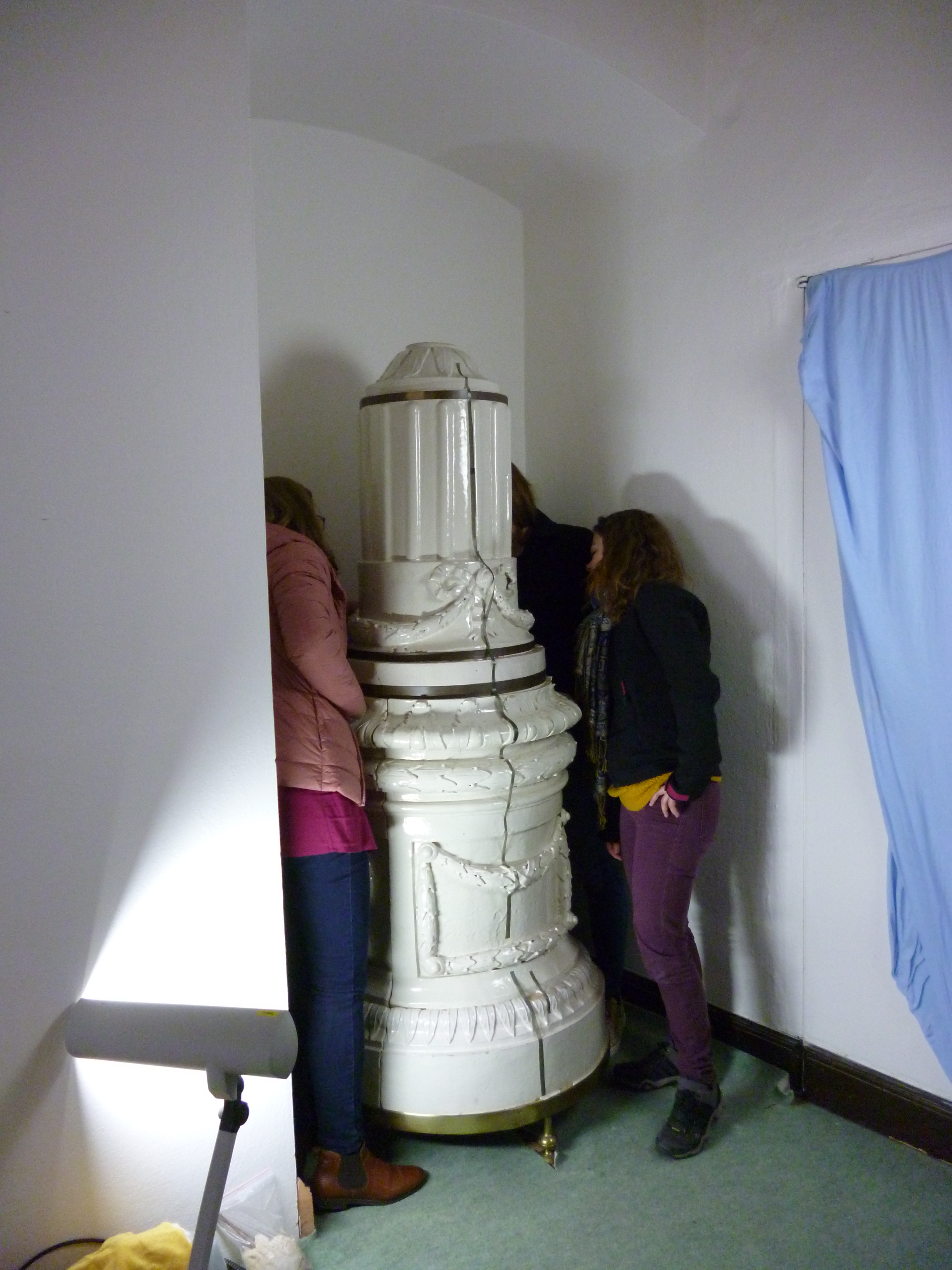 Jak vlastně restaurování probíhalo? Prvotní je restaurátorský průzkum, následuje fotodokumentace, restaurátorský záměr, čištění, zpevnění, konzervace, úprava spárování, nové spárování, doplnění chybějících částí, restaurování kovových částí a závěrečná retuš. Nejsložitější etapou bylo doplňování, zejména u nejstarších kamen pocházejících pravděpodobně z Tyrolska a datovaných do 2. poloviny 16. století. Tato kamna s christologickými motivy byla nejvíce poškozena popraskanými kachli a mnohačetným chybějícím původním materiálem.