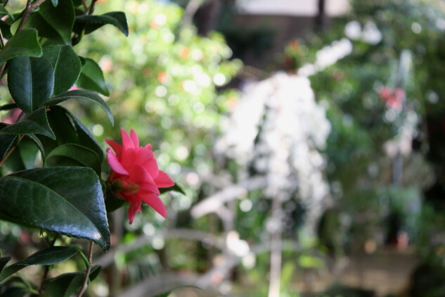 Kamélie japonská – je okrasná rostlina pěstovaná v Asii už stovky let. V Evropě začala být známá od osmnáctého století. V 19. století bylo sbírání kamélií zálibou nejen šlechty, ale i jiný majetných vrstev. Pro kamélie se stavěly speciální skleníky a kvetoucí rostliny se používaly k výzdobě zimních zahrad. Květy kamélií byly ozdobou plesových šatů na evropských dvorech, ale pro samuraje znamená tento květ symbol smrti a znovuzrození. Kamélie jsou stálezelené keře nebo stromy a existuje několik stovek různobarevných odrůd. U nás pravidelně rozkvétají v zimě. Přestože paneláková éra kaméliím příliš nepřála, nevyhovuje jim příliš suchý a přetopený interiér, jsou kamélie v posledních letech velmi vyhledávanými květinami.