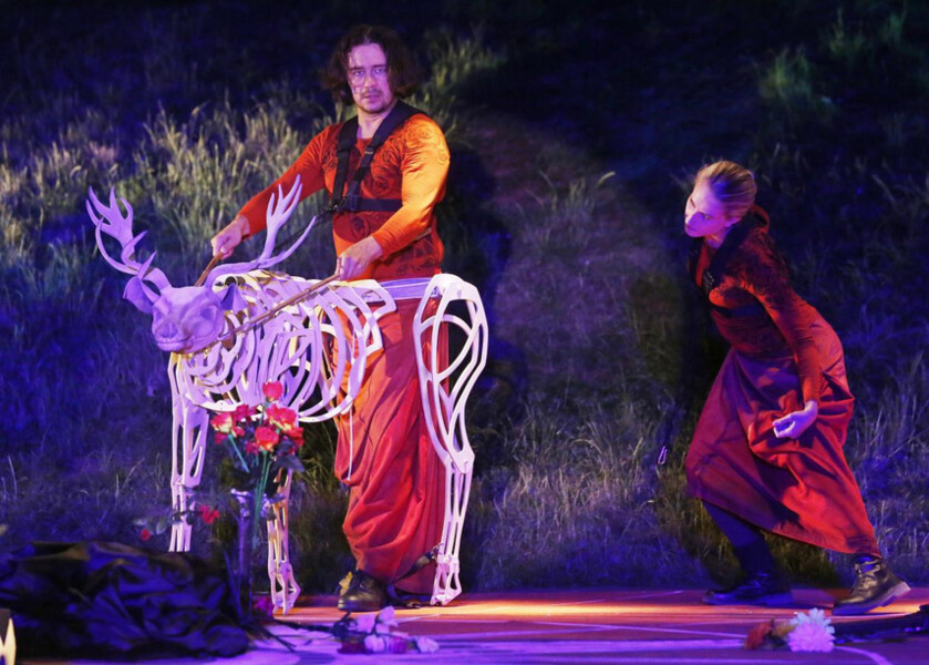 Plenérové představení v režii Mariána Pecka na rondelu pod hradní věží.