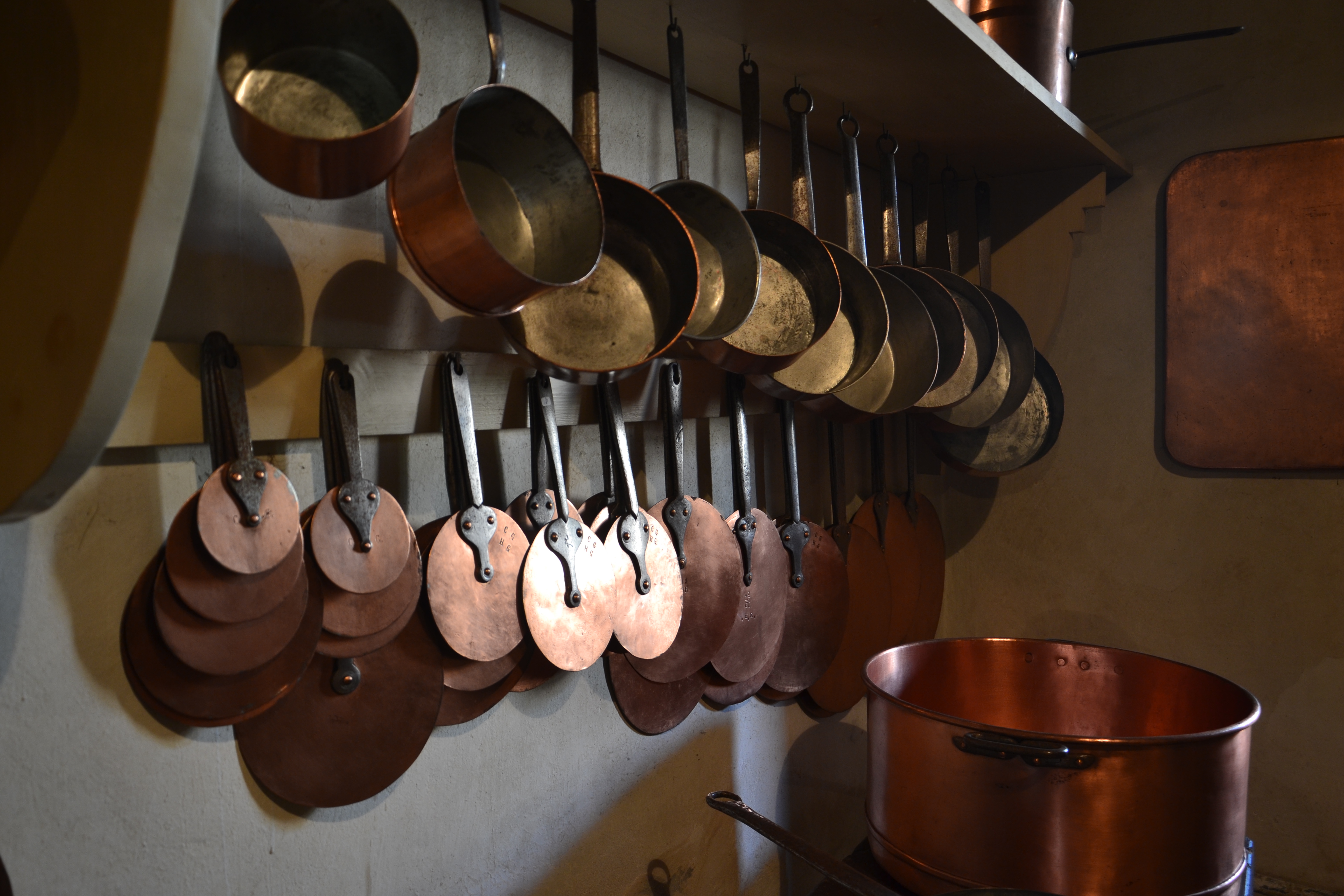 Zámecká kuchyně obsahuje největší sbírku měděného nádobí v celé České republice a dále potom sbírku nádobí porcelánového. Její součástí jsou rovněž funkční kachlová kamna obsahující mimo jiné gril. Na kamnech je navíc umístěna kovová nádoba, v níž se ohřívala voda, která vztlakem putovala o dvě patra výše, do zámecké koupelny, kde si tak dámy mohly již na počátku 20. století pohodlně dopřávat horké koupele.