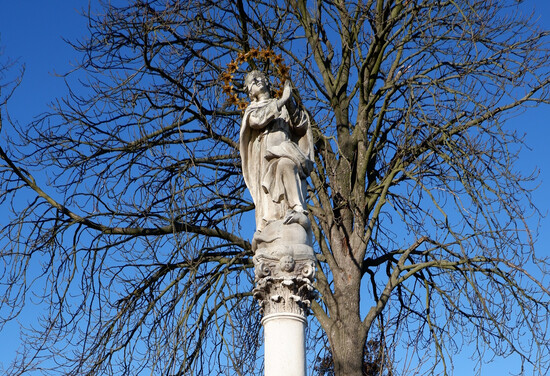 Vrcholně barokní umělecky kvalitní kamenosochařské dílo s dynamicky podanou figurou Panny Marie v obvyklém ikonografickém ztvárnění. Historická dominanta...