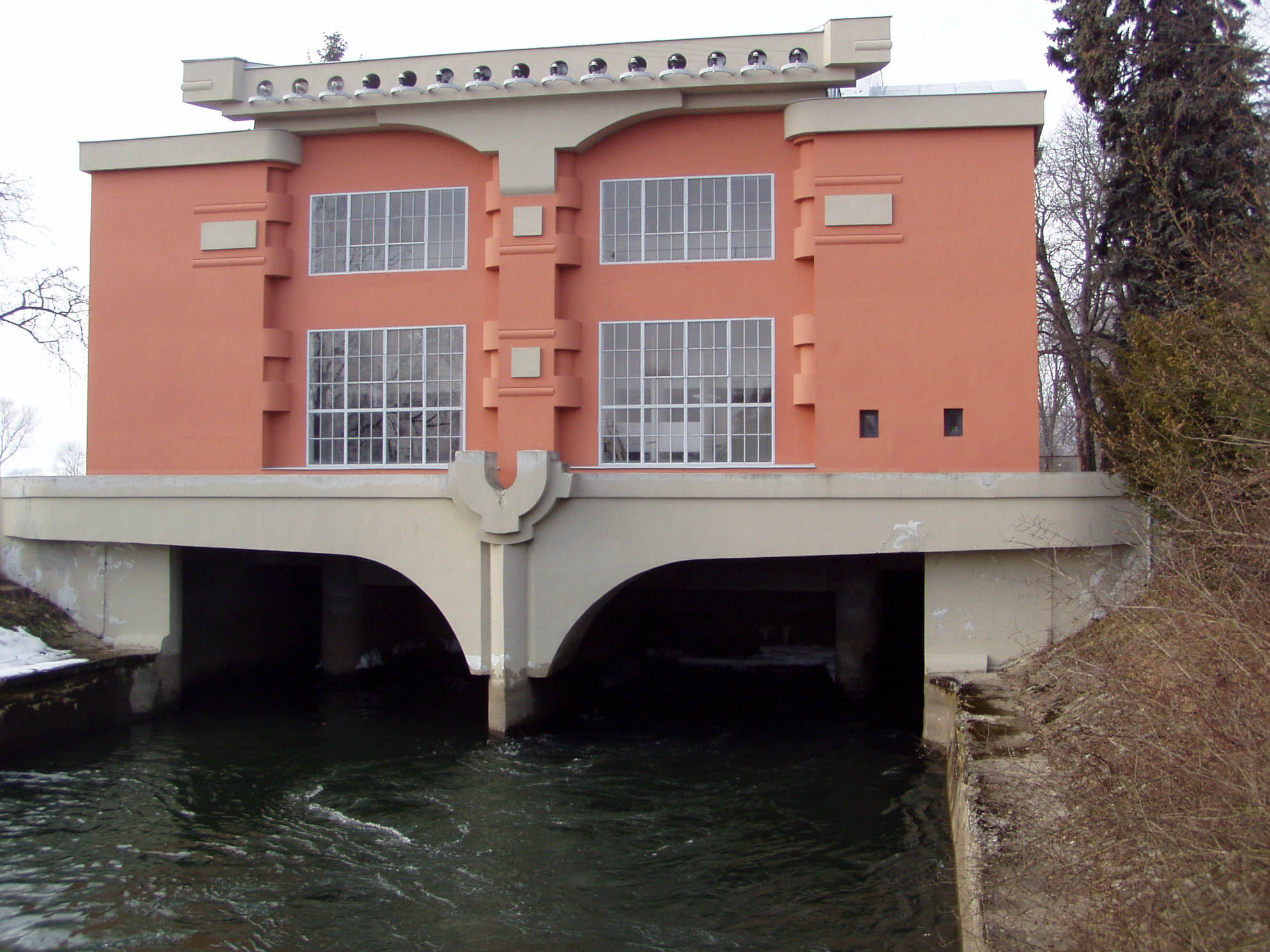 Neoklasicistní technická stavba podle projektu Antonína Engela z roku 1913, postavená v letech 1914–1919 firmami Kruliš, Lanna, Hanauer, Vlček a Herzán.